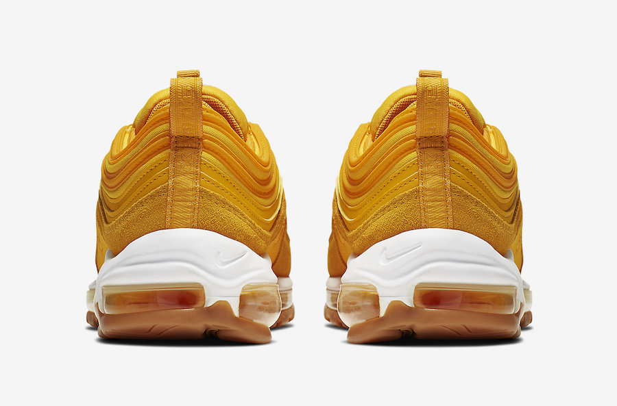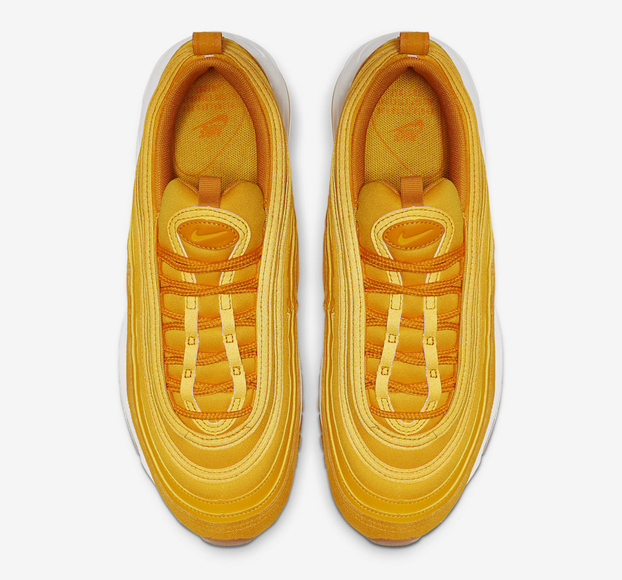 大面积金黄覆盖的鞋身,带来强烈的视觉冲击感,与普通配色不同的是,这双 Air Max 97 为 Premium 规格,物料的选择也更加考究。