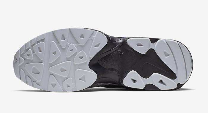 整体以灰色为主体,鞋面上出现了大面积的黑色涂装,尽显沉稳干练气息。标志性的 Swoosh Logo 采用深蓝色妆点,细节之处注入醒目的荧光黄色调,让整双鞋在低调之余,还不失个性元素。