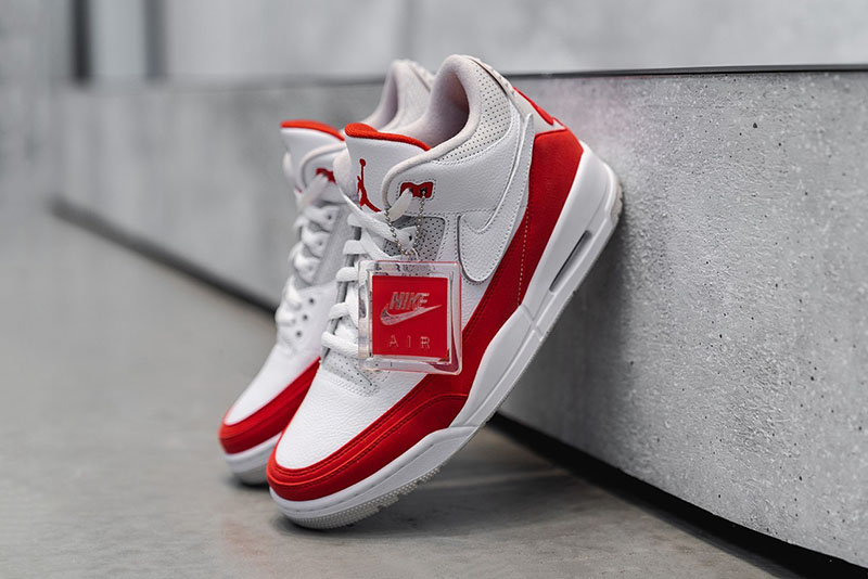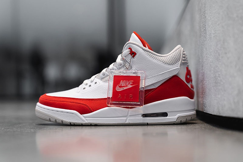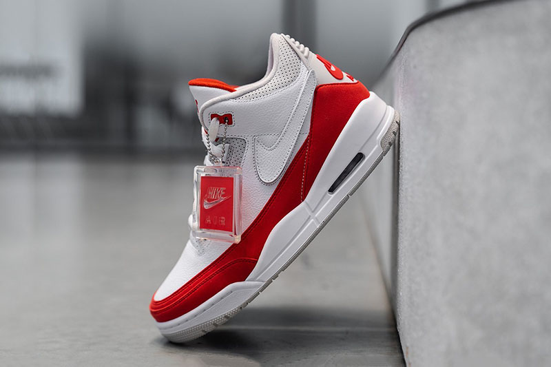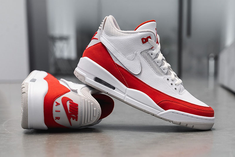 眼前这双全新配色 Air Jordan 3 Tinker “Air Max 1” 鞋身采用 Tinker 早期 AJ3 手稿造型,配色方案采用 Air Max 1 的结构呈现,白色鞋身辅以红色翻毛皮革环绕。