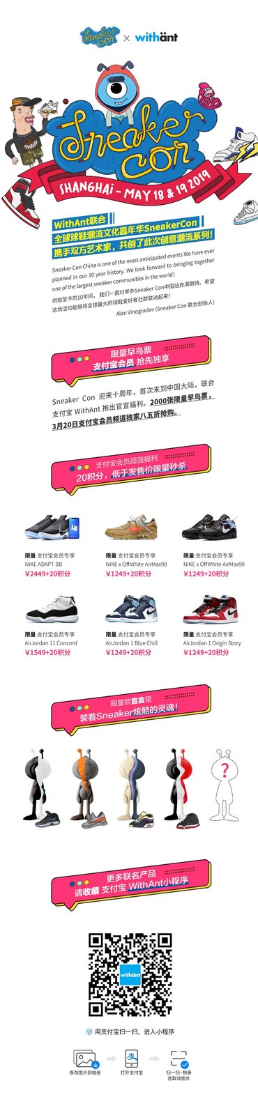 值得一提的是,支付宝作为 Sneaker Con 的官方首选支付合作伙伴,3 月 20 日将为支付宝会员及 Sneaker Con 粉丝带来 2000 张 8.5 折早鸟票。还将提供六款热门球鞋限量积分兑换折扣购买机会以及 Legit Check 球鞋鉴定区的“快速通道券”,并享受会员专属待遇。活动详情及参与方式见文末长图。