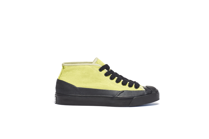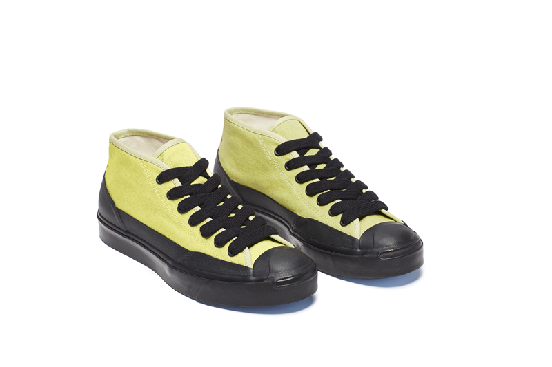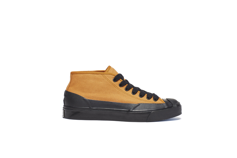 鞋面使用 12 盎司有机帆布打造,相比以往的开口笑鞋型,将鞋帮加到了中帮的高度。鞋底的橡胶大面积上翻,为鞋款带来更适合户外运动的工装风格。