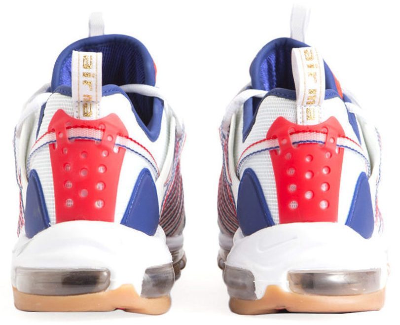 联名设计在经典鞋面造型的基础上,全新融入了 Air Max 97 的经典气垫鞋底,提升整体脚感舒适度,同时在颜值上有所提升。