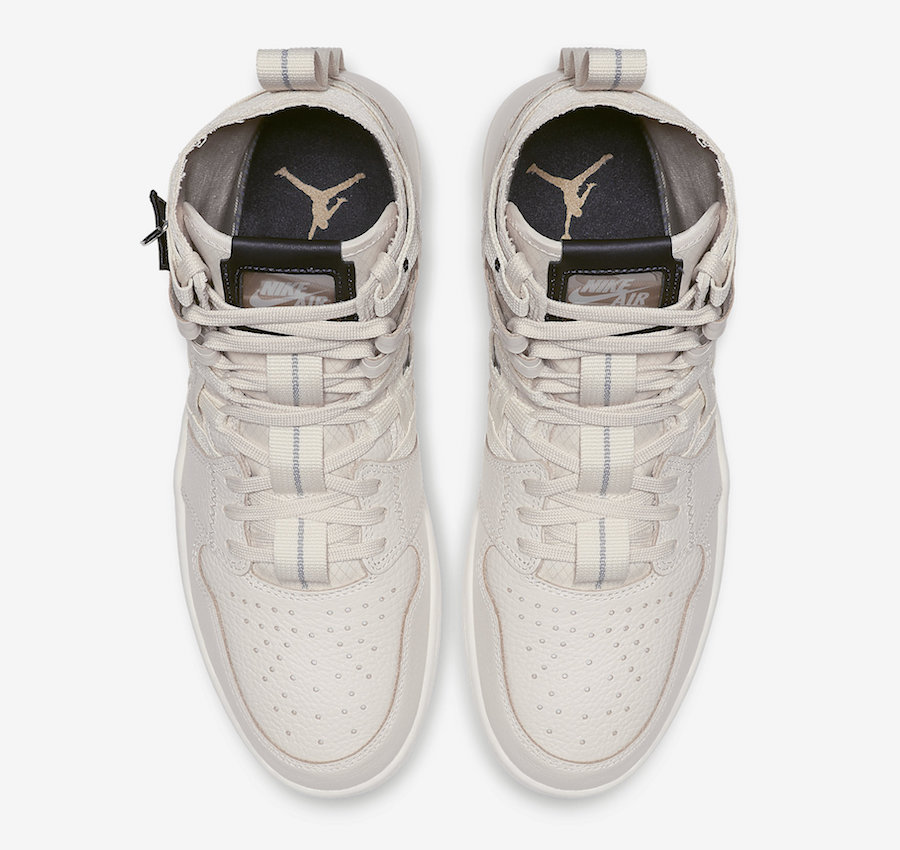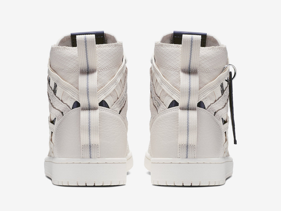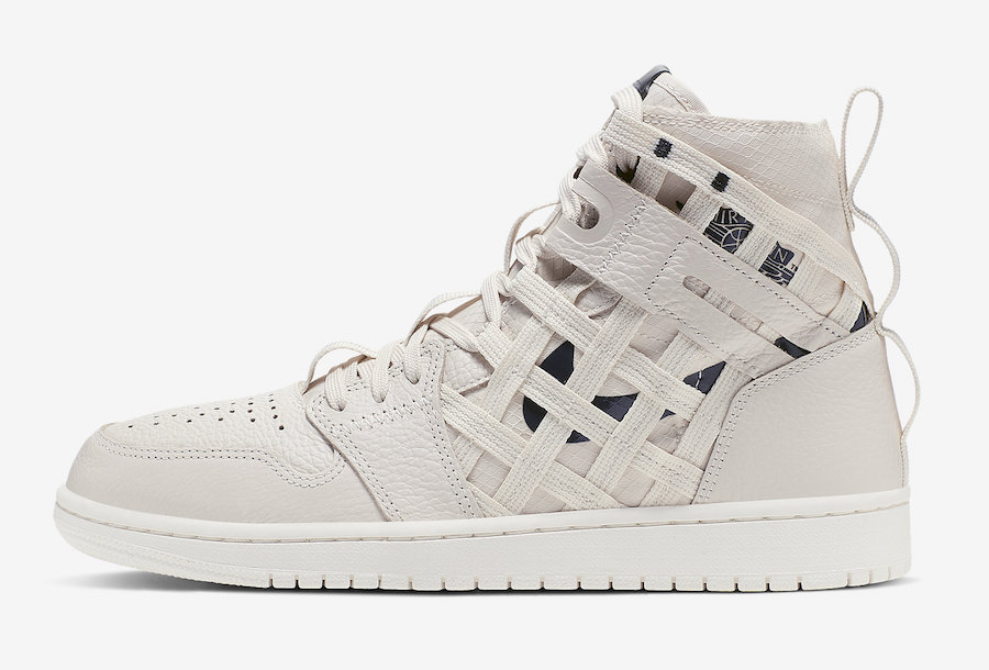 设计上鞋身采用柔软的荔枝皮与织物拼接打造而成,最大的亮点在于鞋身两侧通过条状织物与皮革交错衔接,展现出一种机能风格,彻底颠覆我们对 Air Jordan 1 的固有印象。