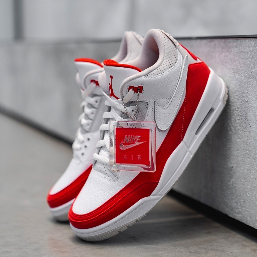 同样是属于今年 Air Max Day 的庆典系列,这双 Air Jordan 3 Tinker “Air Max 1” 不仅是一双带有钩子的 AJ3,不仅是一双 Nike Air 后跟的 AJ3,它还再现了 Air Max 1 OG 最为经典的元年白红配色!
