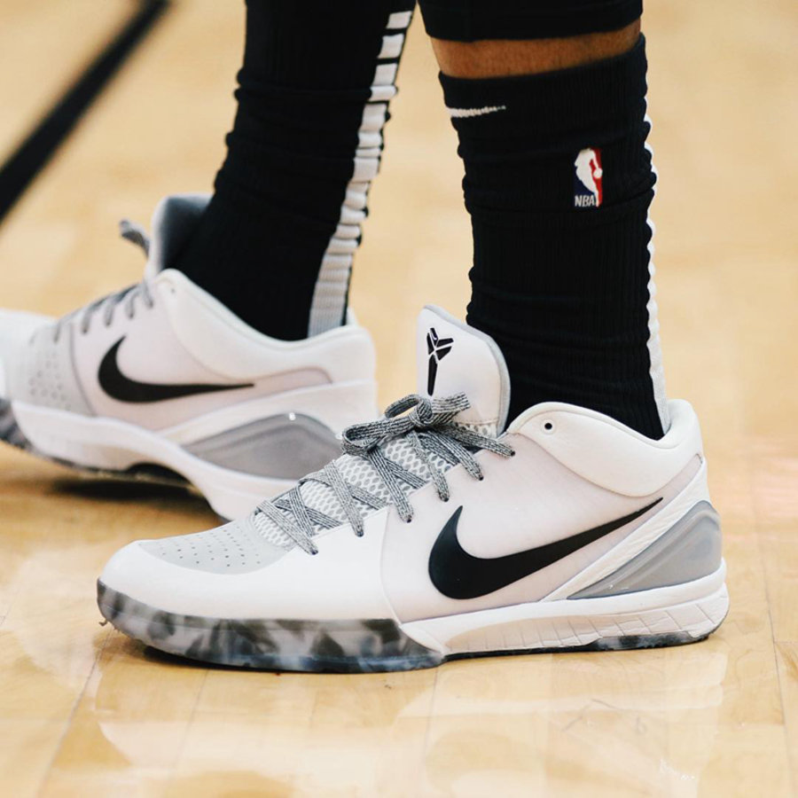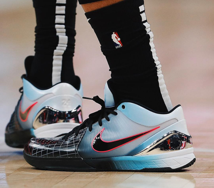 在今天的比赛中,著名科密德罗赞又上脚了一款全新配色的 Nike Kobe 4 Protro。其实早在几天前,科比就已经提前上脚了这款配色。