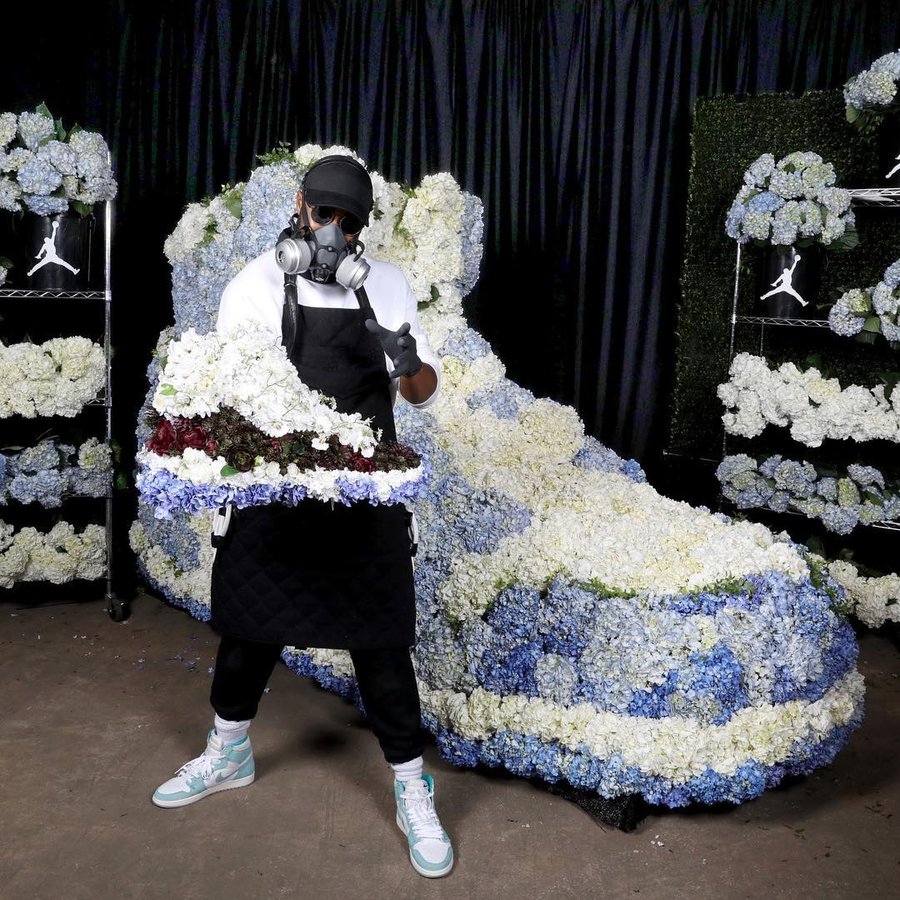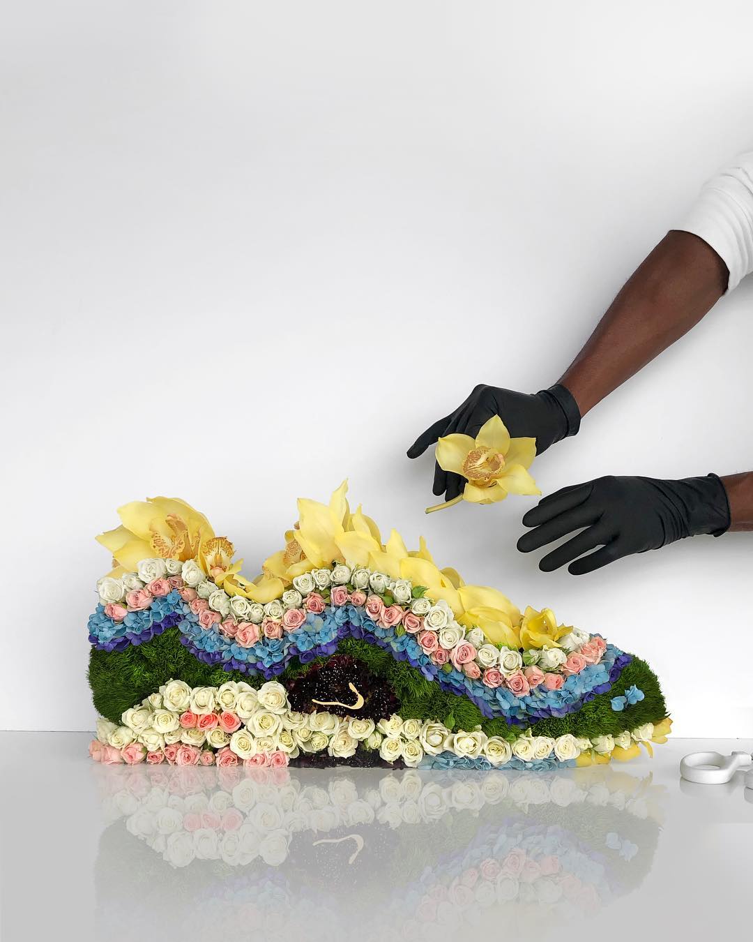 他擅长用鲜花打造出一双双 “重量级球鞋”,所以经他重塑的花束球鞋和真鞋一对比,绝对不只是轮廓相似那么简单,无论是从配色还是细节上看,还原度都极高。