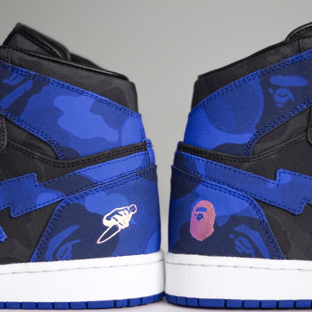 还有下面这双 BAPE x Air Jordan 1 ,绝对是将 BAPE 与黑蓝 Air Jordan 1 完美融合,每一处细节都诚意满满。