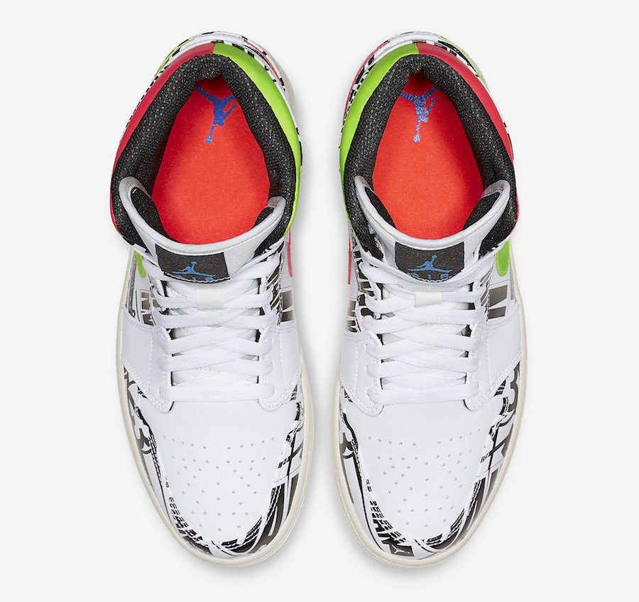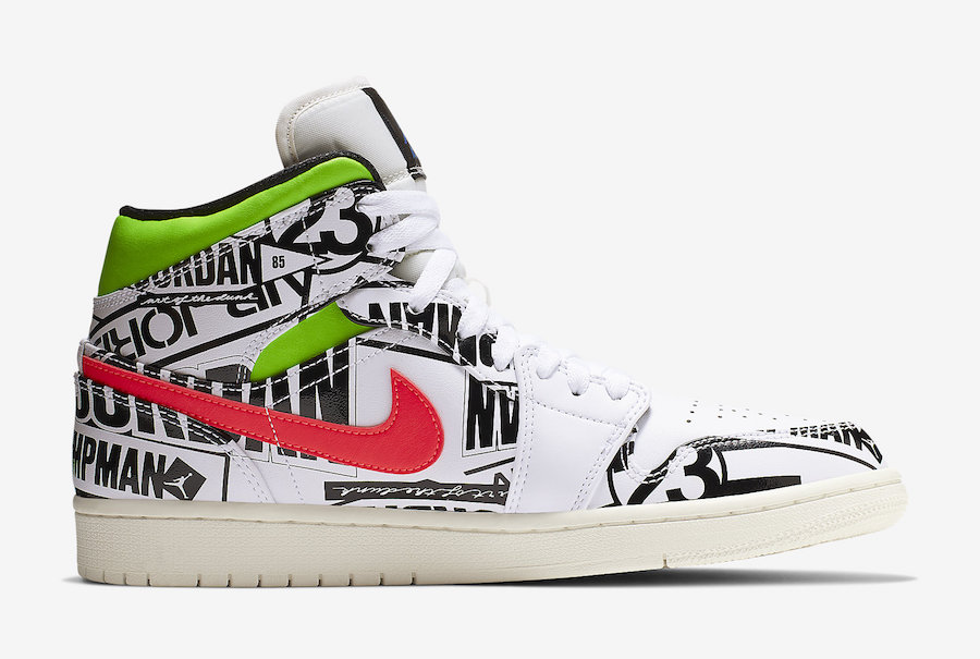 这双鞋以 Jordan Brand 广告元素设计灵感,在白色鞋面上以涂鸦风格,装饰了众多 Jordan Logo 及标语。
