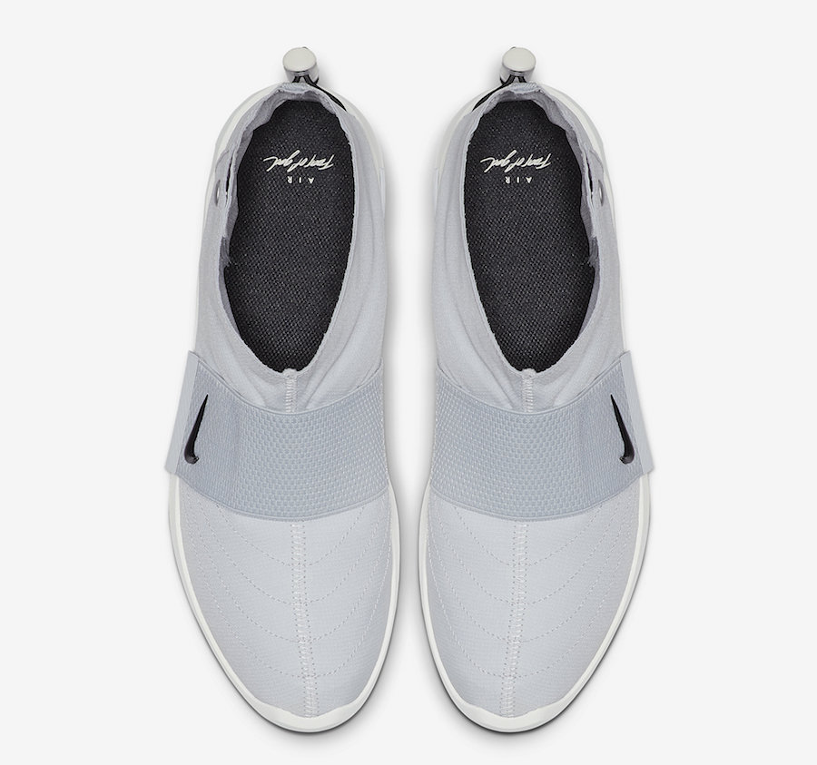 说到 Air Fear of God Moccasin,抗撕裂尼龙鞋面以环装车线妆点,搭配印有黑色 Swoosh Logo 的横向魔术贴。