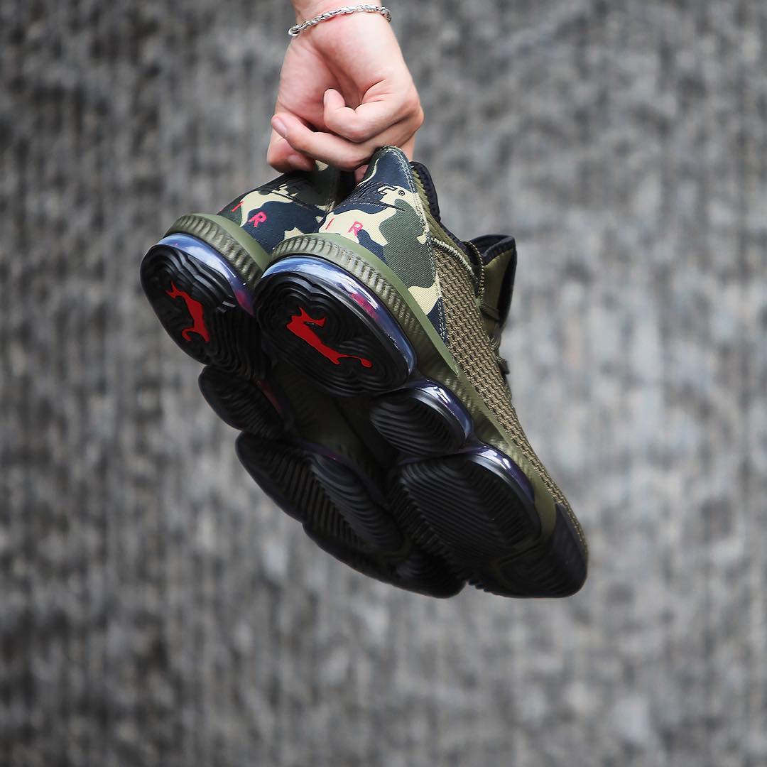 继此前 LeBron 16 Low “Safari” 发售之后,詹皇最新战靴的低帮版本将迎来全新迷彩配色,一起来看看吧! 标志性的一体式鞋身,军绿色织物鞋面辅以黑色点缀,鞋舌提环则以鸳鸯狮头压纹示人。 后跟处辅以迷彩点缀,彰显浓郁的军事气息!中底承袭贯穿足底的 Zoom Max 气垫,脚感依旧澎湃。 这款配色将于近期发售,发售价依旧定为 ¥1299 RMB,感兴趣的小伙伴可以安排起来啦! Pic via:gc911