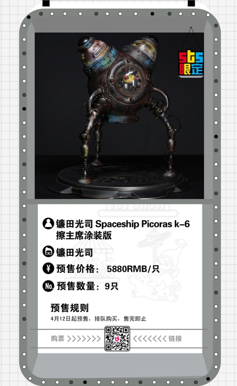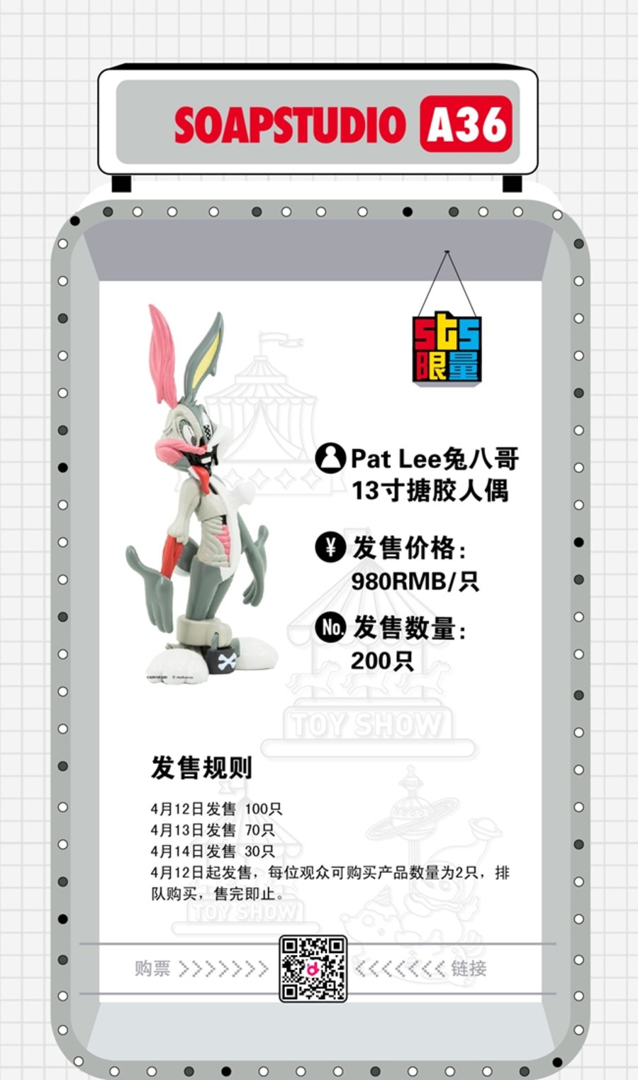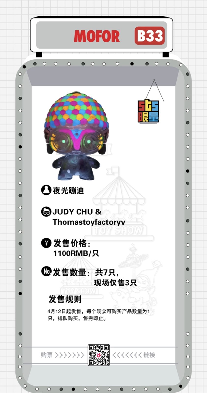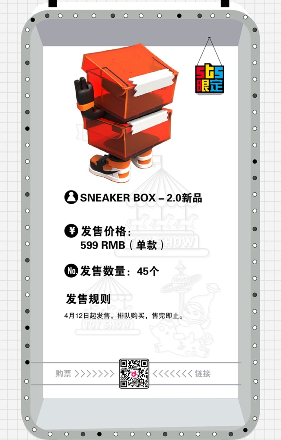 最后为大家带来最为关心的观展购票信息,目前 2019 上海国际潮流玩具展 (STS) 已在大麦网开启购票通道(点此跳转),单日票价 ¥120 元。