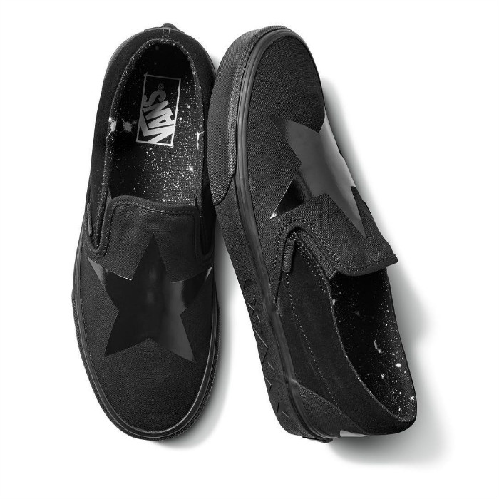 与此同时,Vans 从 Bowie 音乐生涯中那些极富标志性的唱片封面中汲取灵感,从早期专辑《Space Oddity》到他的遗作唱片《Blackstar》,只为让本次联名产品更能体现 David Bowie 标识性的个人特色。