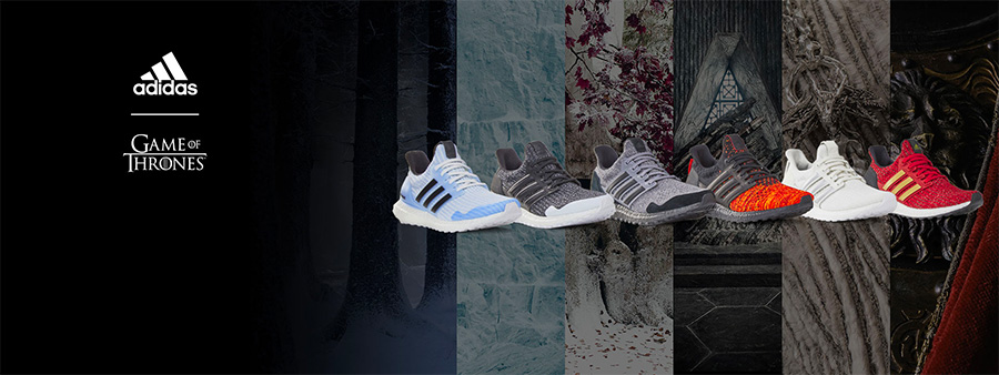 今年 GOT x adidas 的联名系列也正式发售,基于 Ultra Boost 经典跑鞋打造了多个配色,再现了剧中的人物角色。