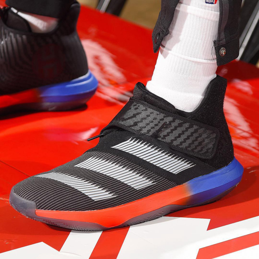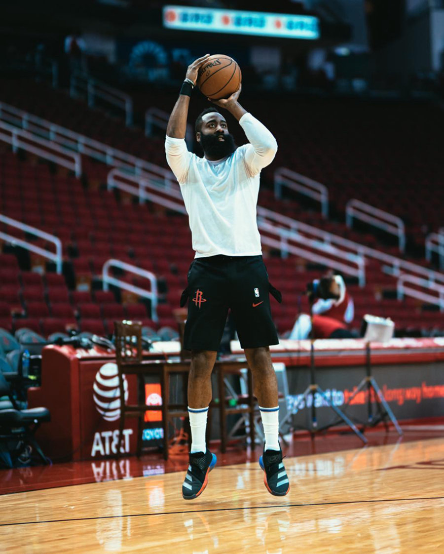 球星的支线鞋款大多延续正代的设计风格,被视作正代简版。但近日哈登上脚了设计与 adidas Harden Vol.3 差别巨大的新一代支线鞋款 adidas Harden B/E 3。