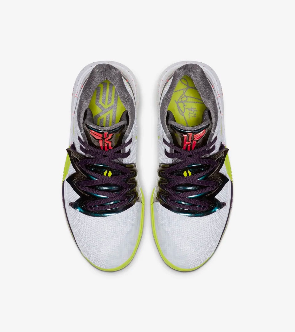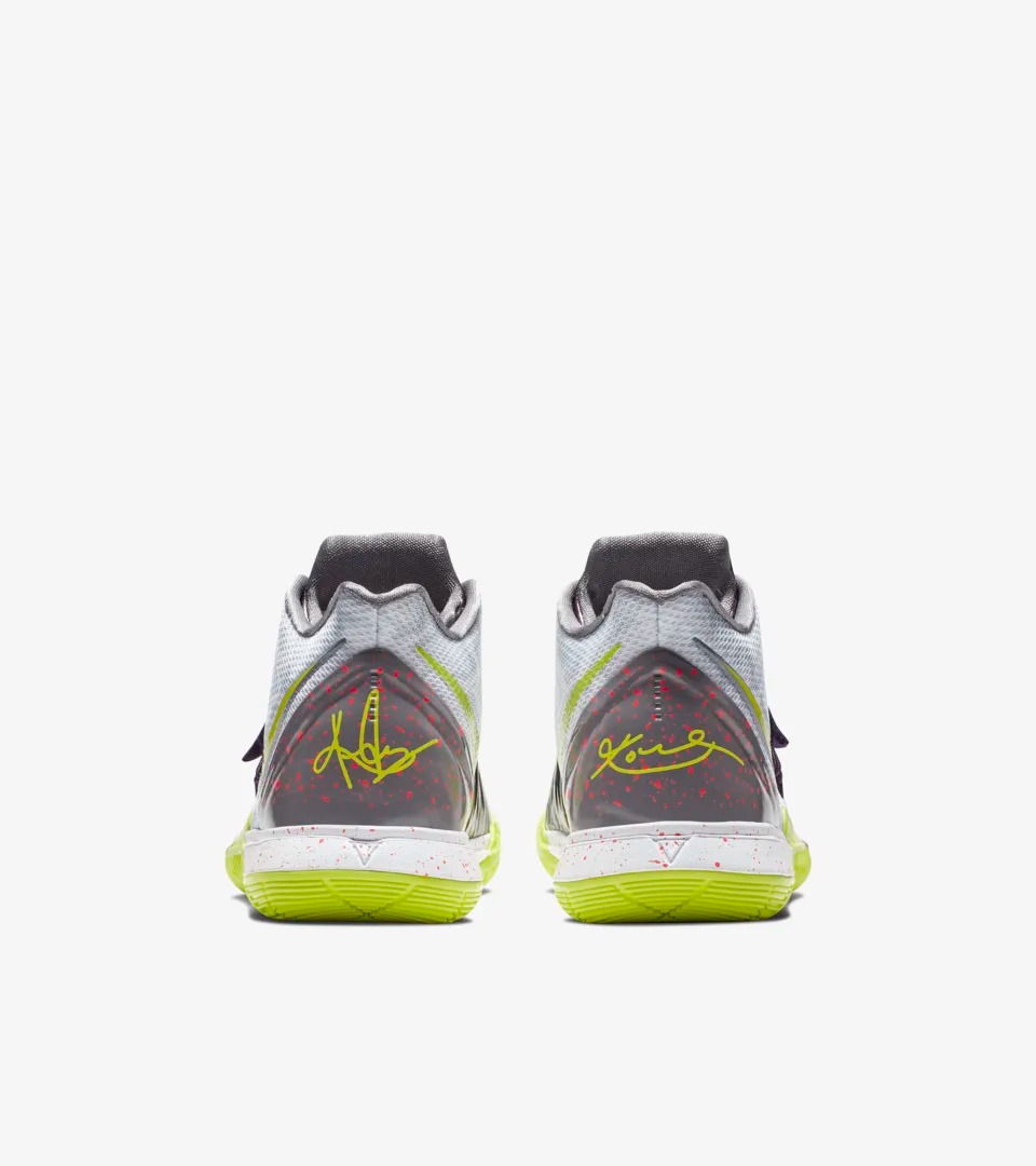 近日欧文已率先上脚 Kyrie 5 “Mamba Mentality/曼巴精神” 主题配色,配色灵感来自于 Zoom Kobe 5 “Chaos” 的小丑配色,白色鞋身辅以电光紫捕蝇草的特别鞋面呈现,大底与细节采用荧光绿点缀。鞋舌 Logo 特别采用科比的武士 Logo 与欧文个人标志相互拼接而成,致敬意义极为浓郁。
