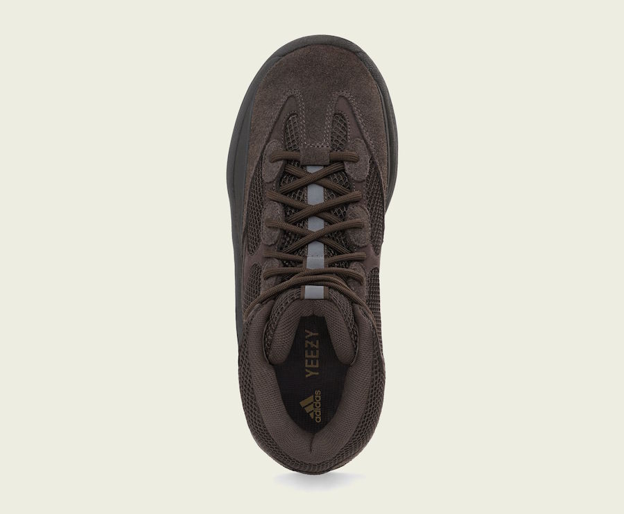 鞋面设计与 Yeezy 500 极为相似,同样以翻毛皮材质搭配网布打造,侧面的橡胶材质上翻也与 Yeezy 500 如出一辙。