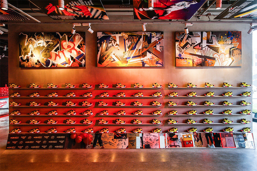 以 Pump Fury 为主题的店铺装修、眼花缭乱的球鞋墙,以及让死忠粉尖叫的众多经典配色出镜,呈现了一场跨越 25 年的球鞋盛宴!