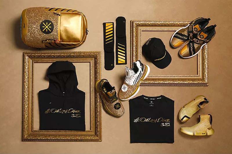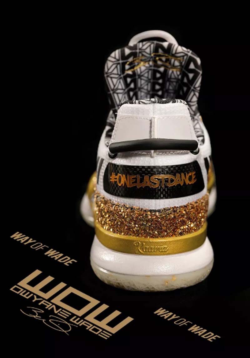 韦德在比赛中上脚一款金闪闪的全新配色韦德之道 7,想必韦密们都把持不住了。这款就是纪念韦德退役的 “One Last Dance” 配色。今早李宁官方已经开启预售。