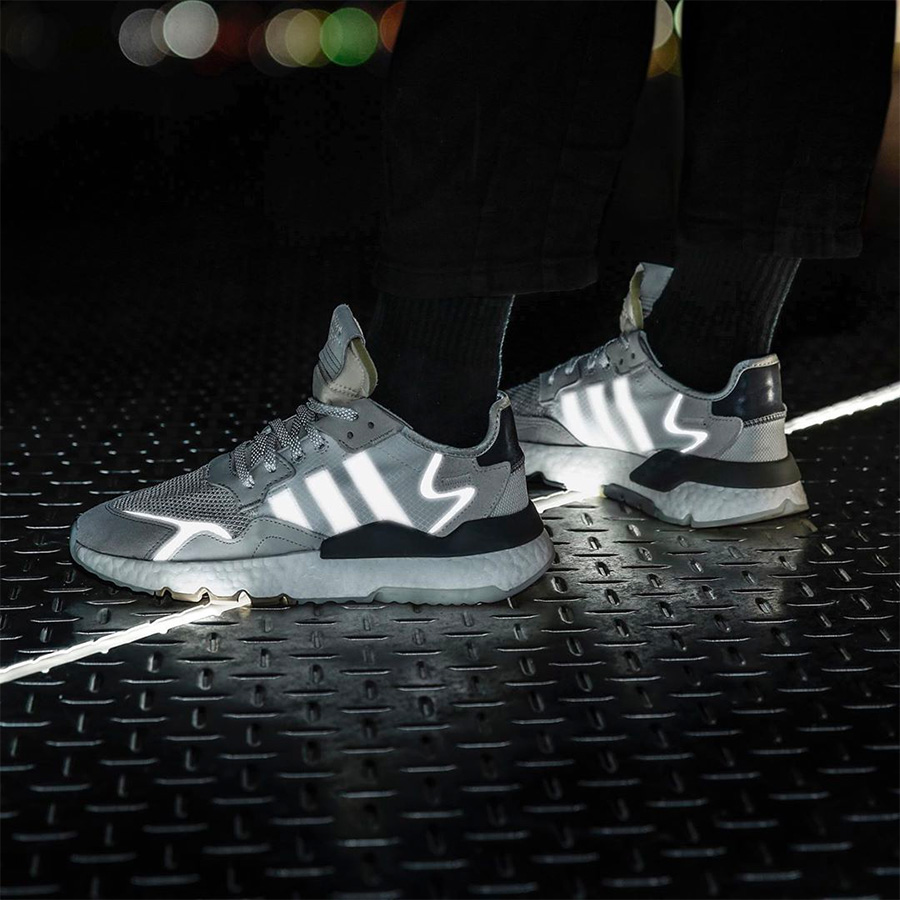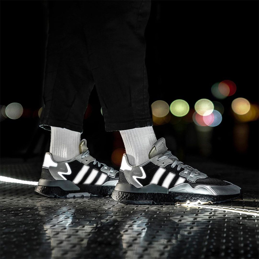 3M 反光毫无疑问的是今年球鞋圈的新风潮,从风靡全球的满天星 Yeezy,到以 3M 反光为主打的 adidas Originals Nite Jogger,让收割街头眼球的方式变得更加的酷炫!