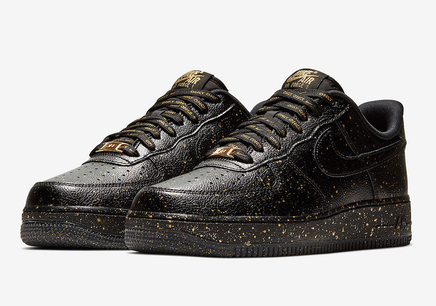 鞋面采用黑色荔枝皮打造,金色泼墨点缀全身,质感非常奢华。