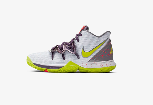 近日欧文已率先上脚曼巴日配色的 Kyrie 5,白色鞋身辅以电光紫捕蝇草的特别鞋面呈现,大底与细节采用荧光绿点缀。