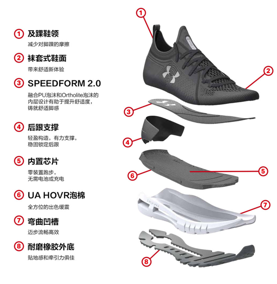 譬如这双鞋的 SpeedForm 2.0 鞋垫,与中底贴合不可拆卸。在廓形与脚掌贴合,脚感与中底搭配更加澎湃。
