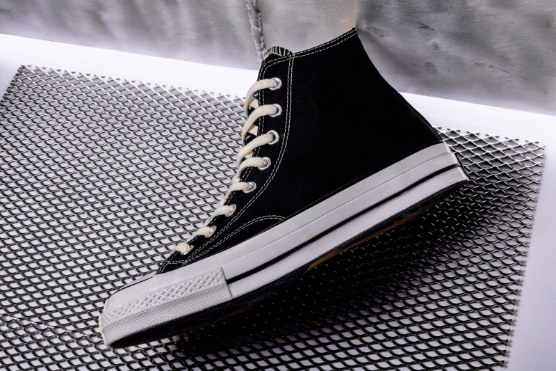 这个 Converse Chuck 70「Reconstructed」系列包括两款配色。一款将黑色与深蓝两款鞋左右拼接,带来阴阳效果。