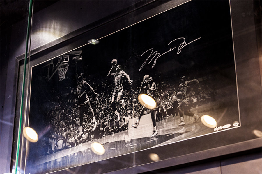最让小编大吃一惊的是种类丰富的 NBA 球星签名收藏品,这双售价近 10 万元的黑红 Air Jordan 1 你见过吗?