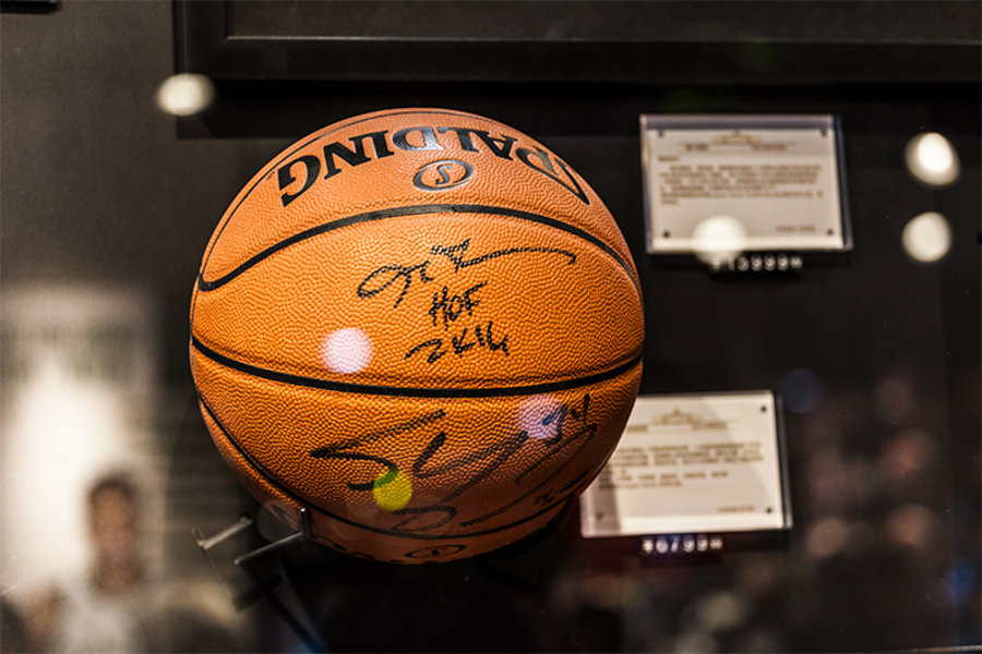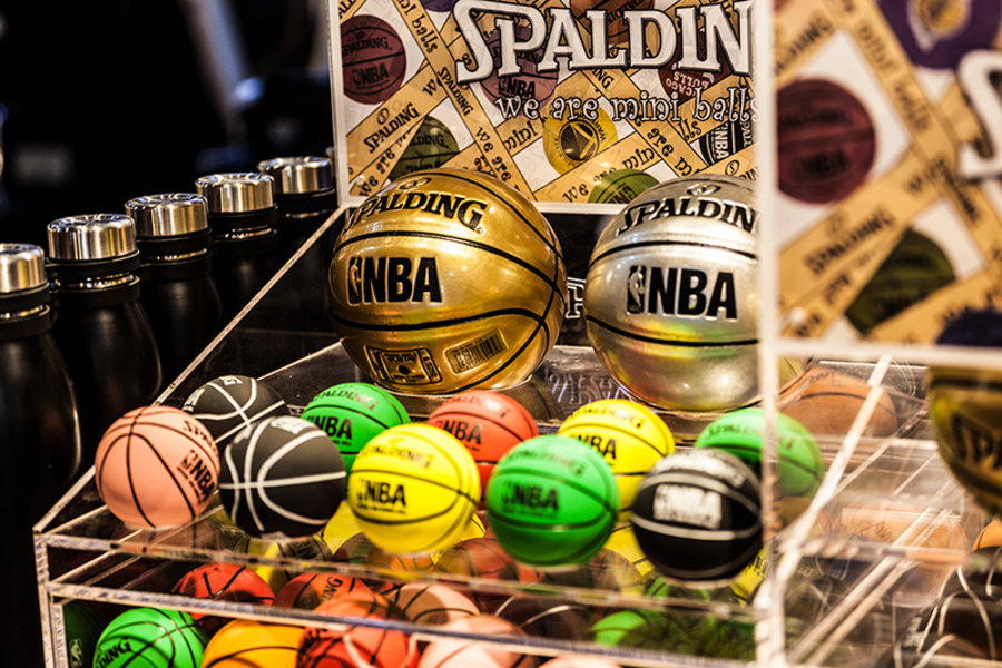 当然了,说到 NBA 自然少不了篮球,一进门的篮球墙绝对能给你带来强烈的视觉冲击。