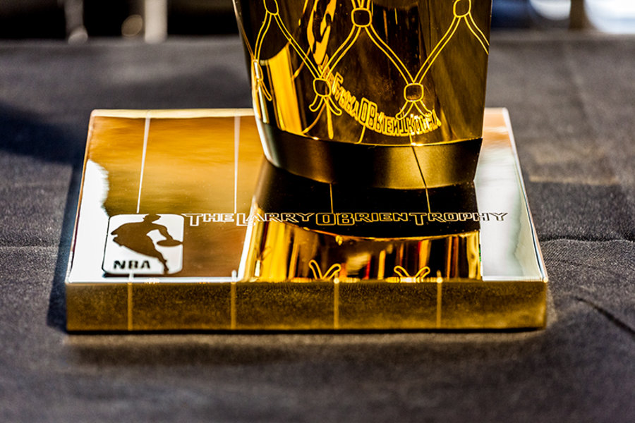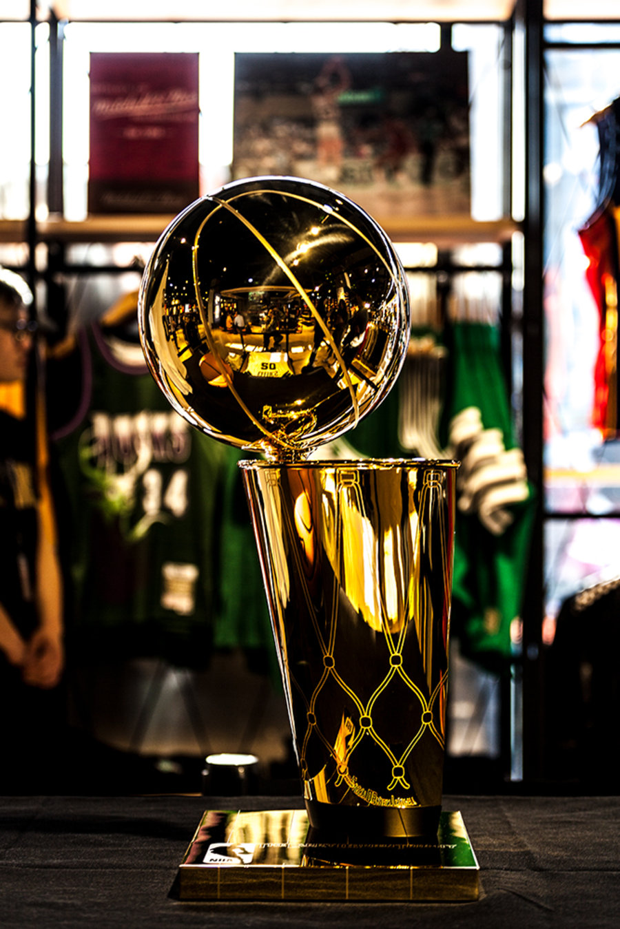 不过要说最让小编震惊的是,NBA 官方竟然把总冠军奖杯——奥布莱恩杯带到了现场。