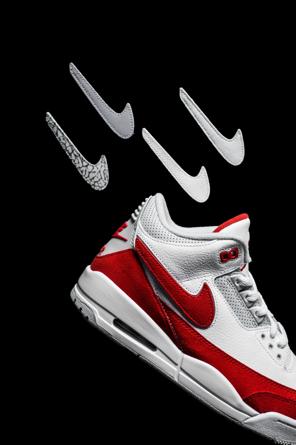 这双 Air Jordan 3 不仅有着元年设计的 Nike Air 后跟,还再现了 Air Max 1 OG 最为经典的元年白红配色!