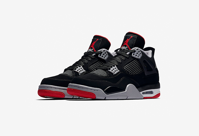 今年黑红 Air Jordan 4 以最 OG 造型回归。标志性的黑色磨砂皮革鞋面,辅以红、水泥灰双色点缀细节,沿袭 Air Jordan 系列的经典黑红配色方案。