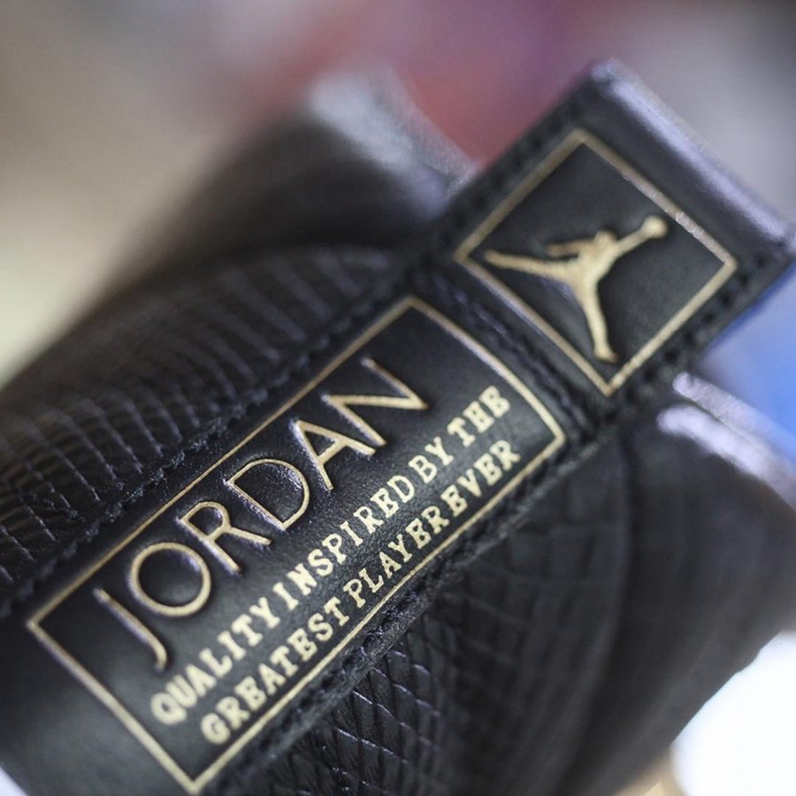 纯黑色装扮的鞋身,辅以金扣、金色挡板点缀,OG 气息十足。