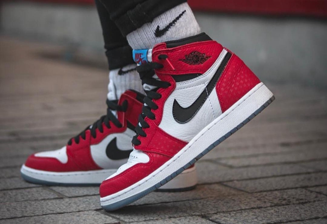 除了限量联名外,像去年年末随电影发售的 Air Jordan 1 小蜘蛛,也是双不错的芝加哥配色鞋款。