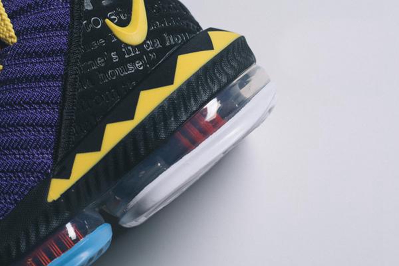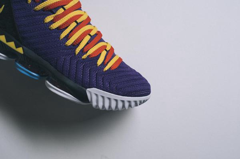 眼前这双 Nike LeBron 16 “Martin" 灵感来自于詹姆斯最喜爱的 90 年代电视喜剧 《Martin》,而配色细节则源于第五季的 DVD 封面。