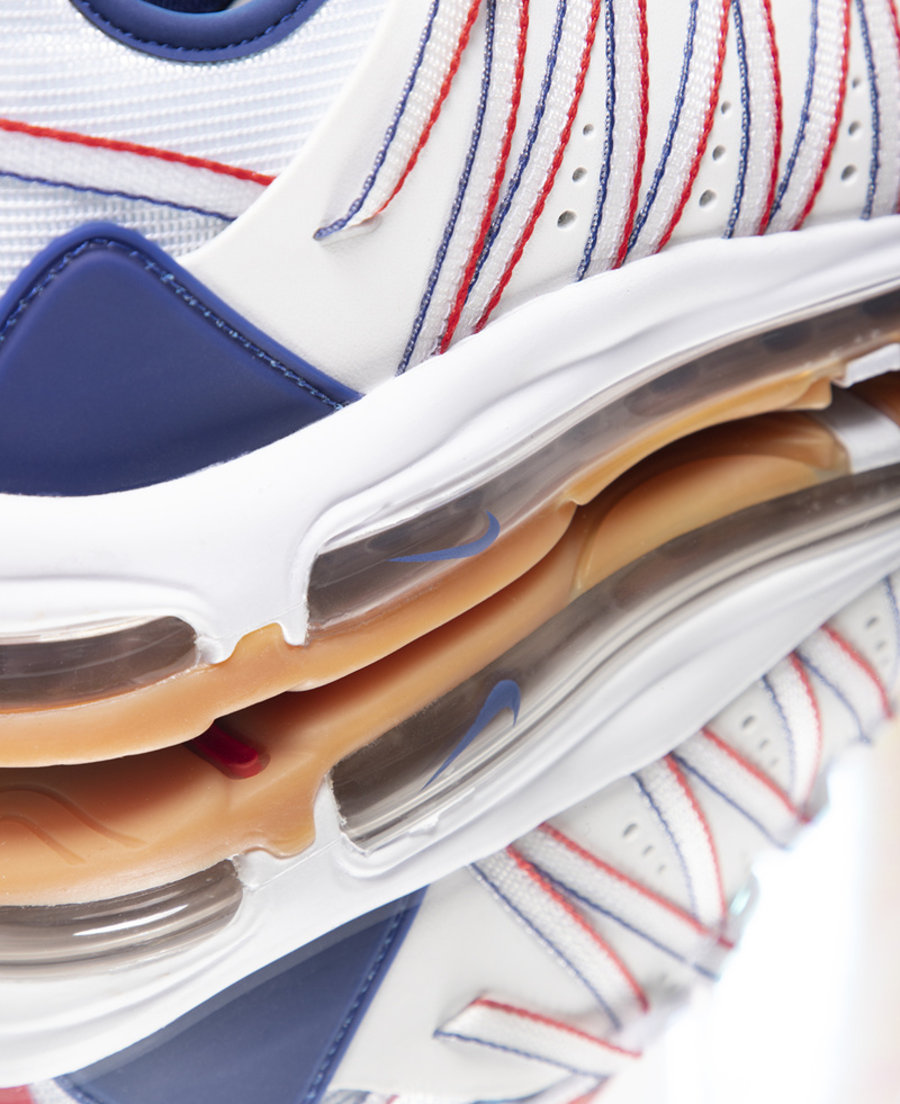 不过此次发售的联名鞋款,在经典鞋面造型基础上,融入了 Air Max 97 的经典气垫鞋底,提升整体脚感舒适度,同时在颜值上有所提升。