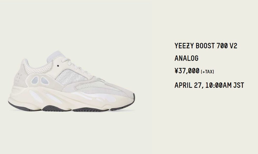 本月虽然没有 Yeezy 350 V2 发售,但还有一款配色颇为清新的白色系 Yeezy 700 “Analog”
