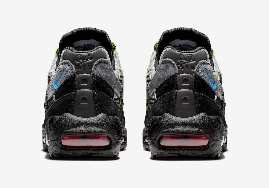 鞋面以抽带编织形式打造,渐变绿色与麂皮灰面材质打造,后跟点缀亮蓝色 Swoosh Logo。呈现在 Air Max 95 的独特流线鞋面上,气质非常出众。