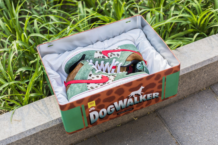 这款特殊鞋盒采用金属打造,以斑点图案及绿色装扮,Dog Walker 文字点明主题。