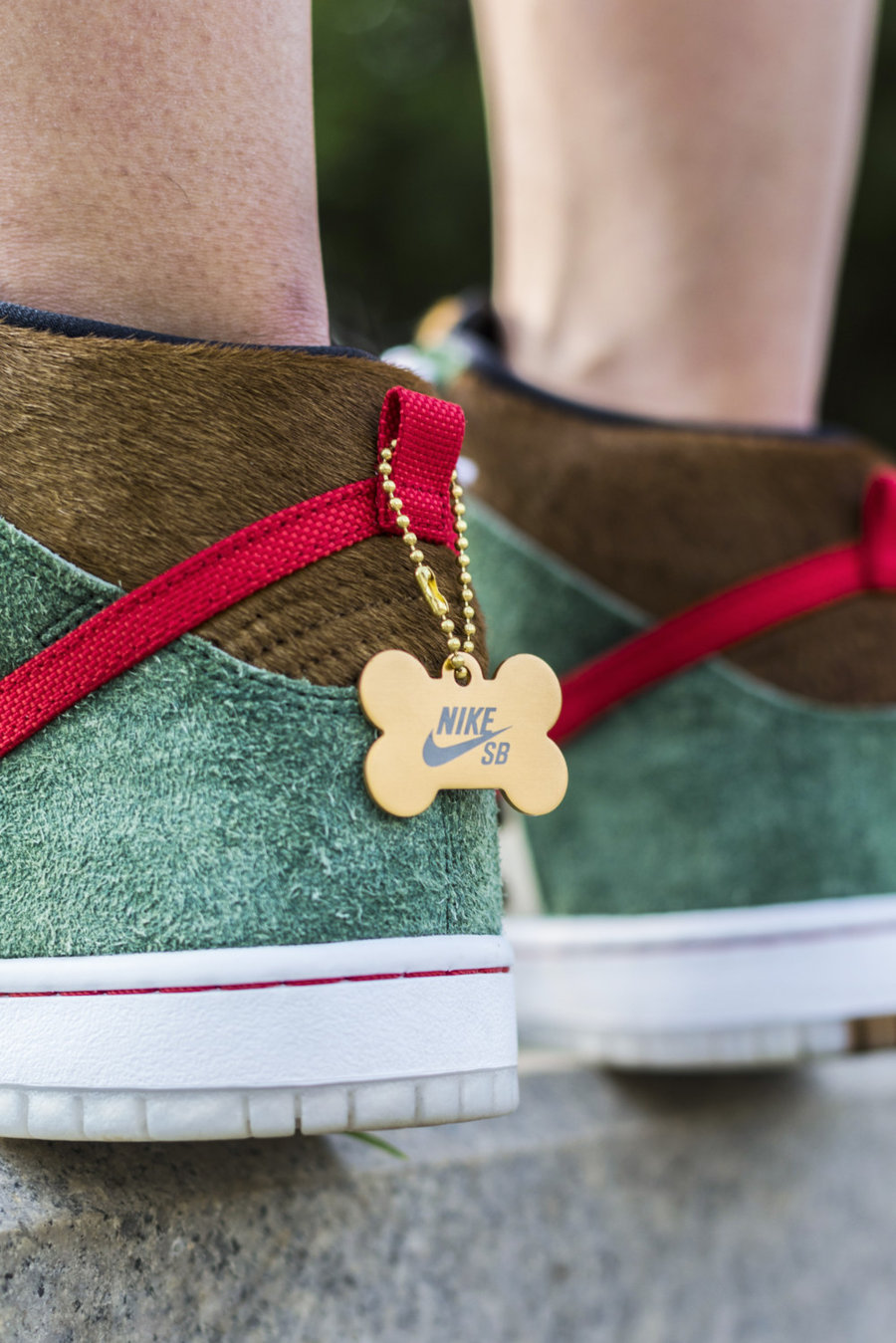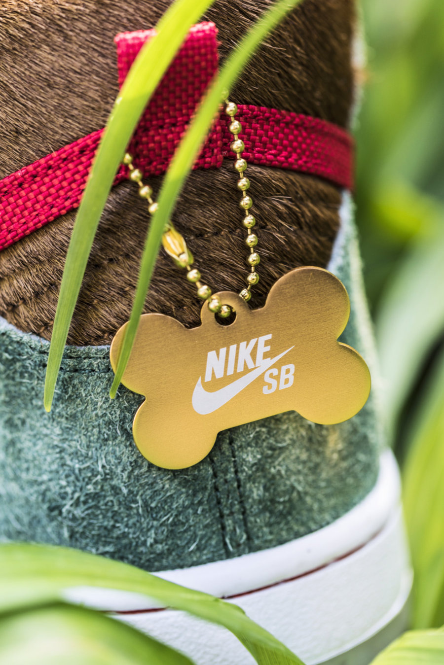 后跟吊牌也以金属狗牌呈现。两面分别镭射刻有 Nike SB Logo 和 Sparky 字样。