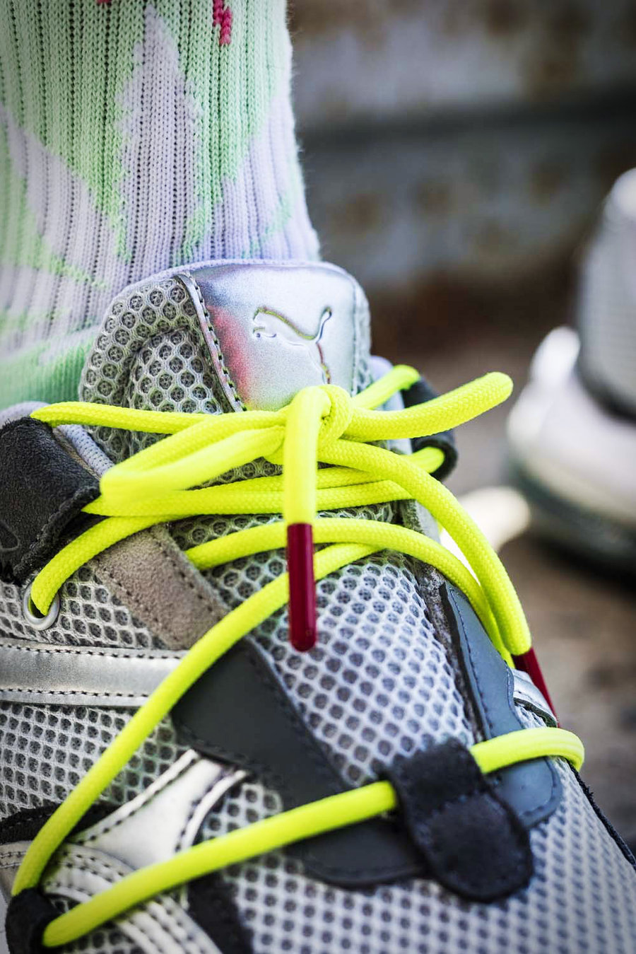最明显的变化就是取消了侧面的 PUMA 跑道 Logo,改为以皮革打造的简洁线条,同时以三行字体展现联名身份。
