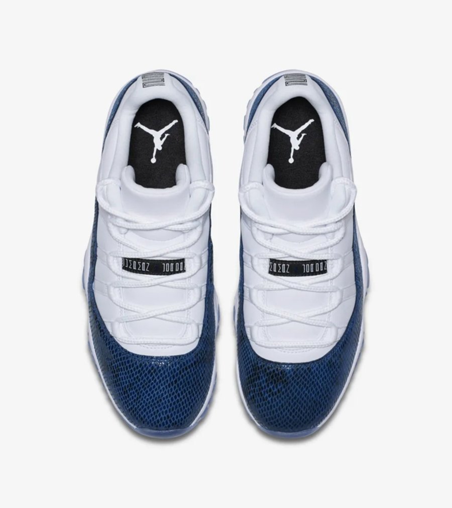 2001 年,Jordan Brand 首次将蛇纹元素替代 AJ 11 原有漆皮部分,时隔八年 Air Jordan 11 Low “Navy Snakeskin”再次回归大家的视野。成为今年第一双 Air Jordan 11。