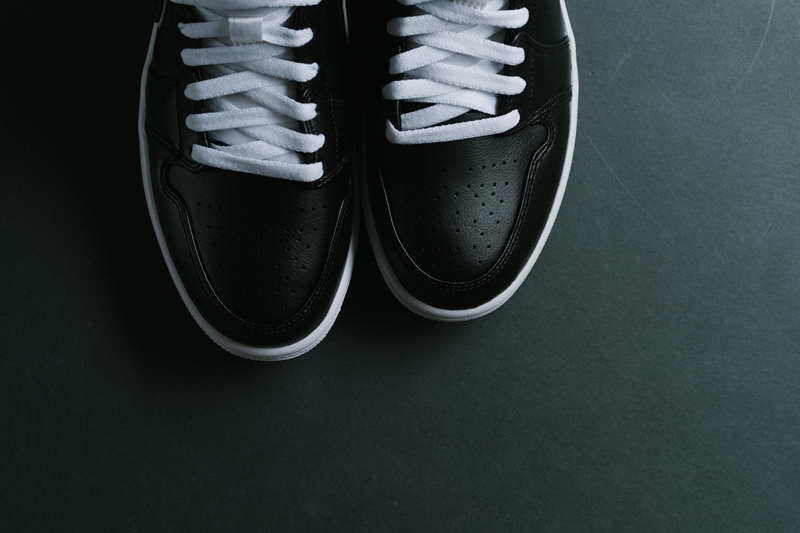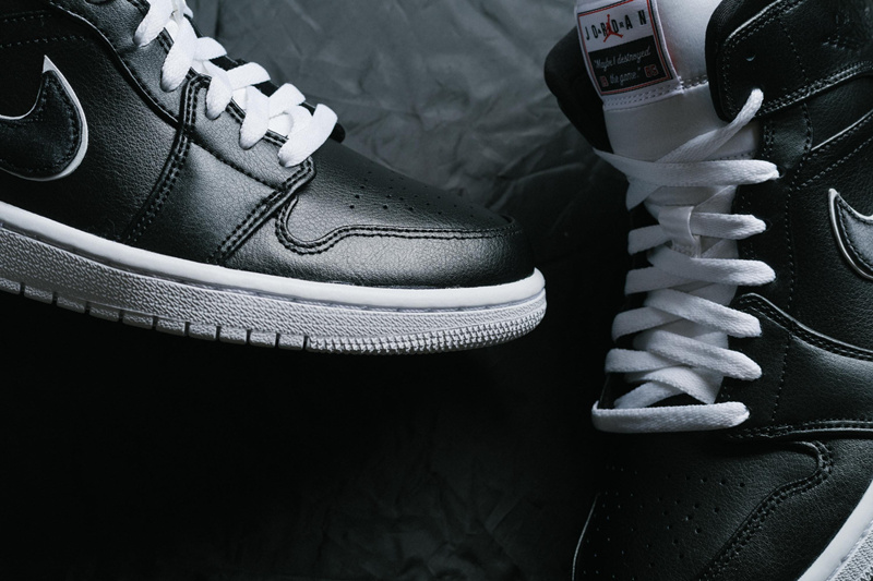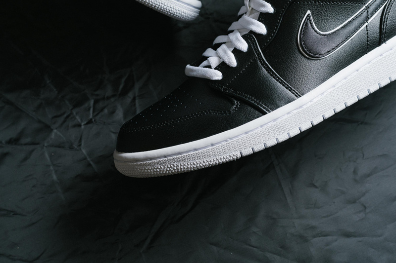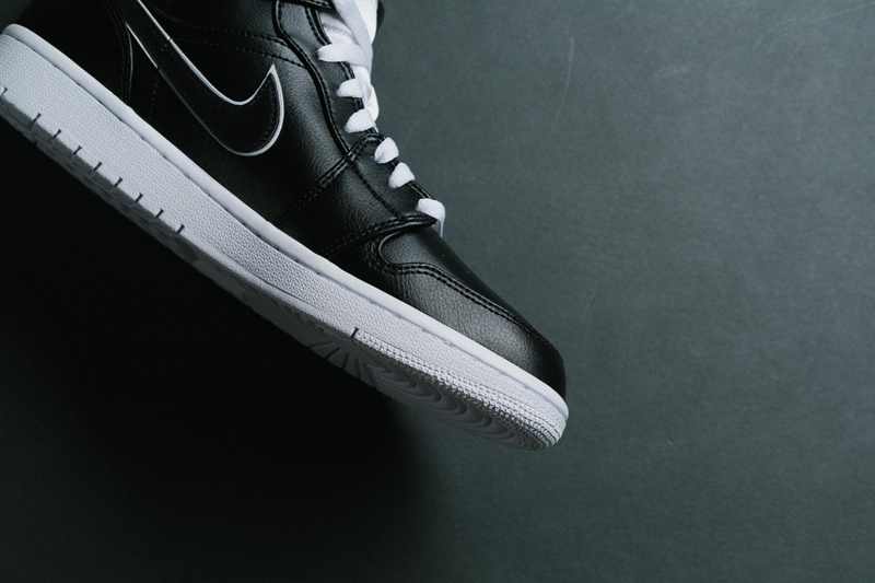 黑色皮革覆盖整个鞋身,白色线条勾勒的黑色 Swoosh 呈现丰富的层次感。