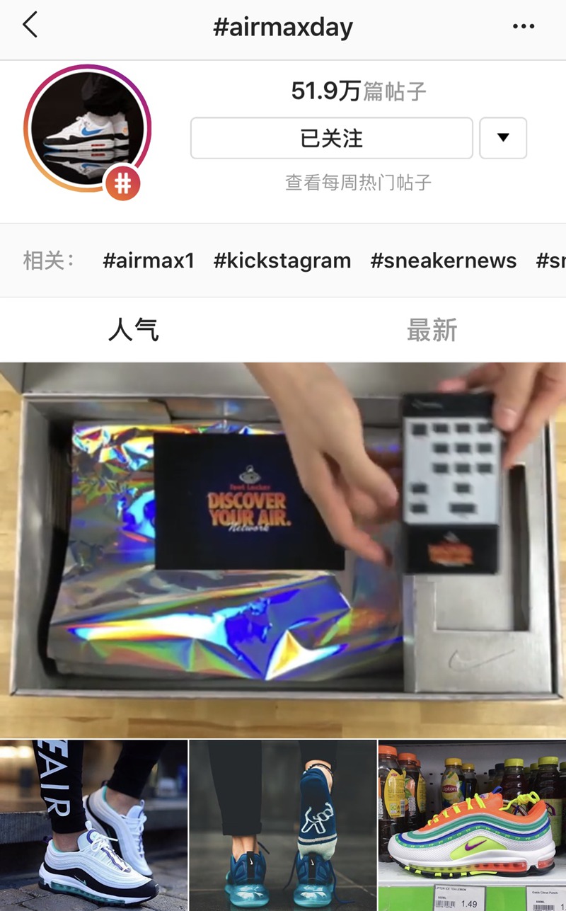 ▼ #AirMaxDay 在 Instagram 有多达 52 万篇相关