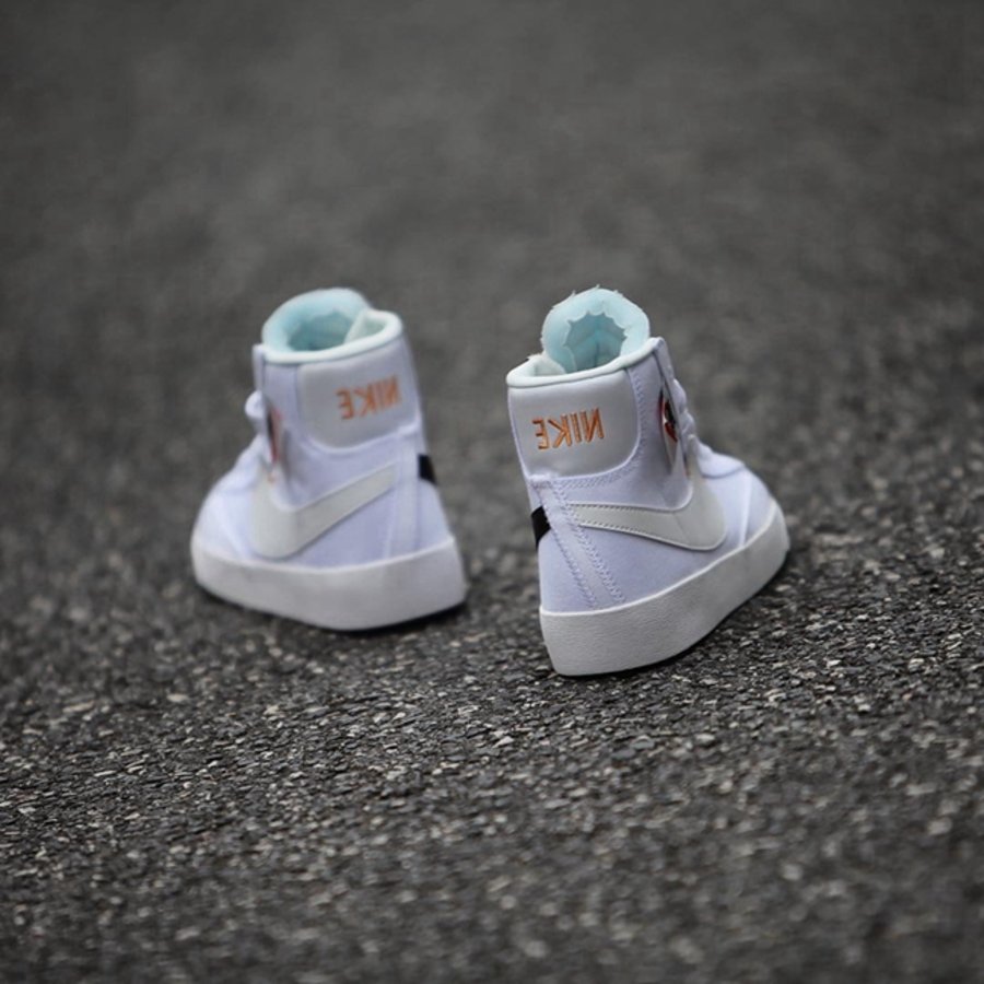 选用白色帆布打造鞋面,鞋内外两侧 Swoosh 则采用解构设计,后跟处反向的 Nike 拼写也颇具玩味,再加上黑白配色酷似 OFF-WHITE x Nike Blazer Mid 初代联名,相信一定会有很多人喜欢。