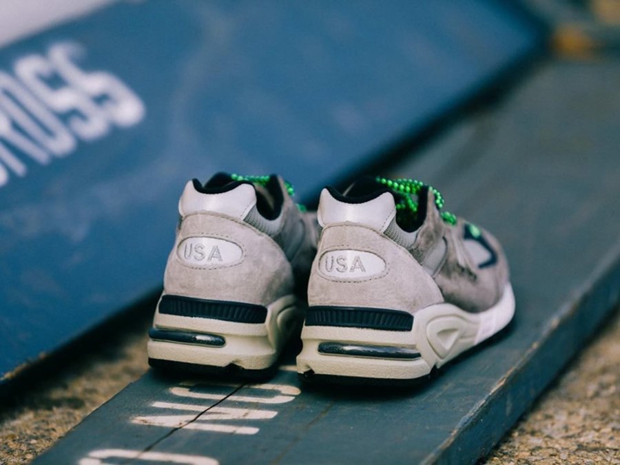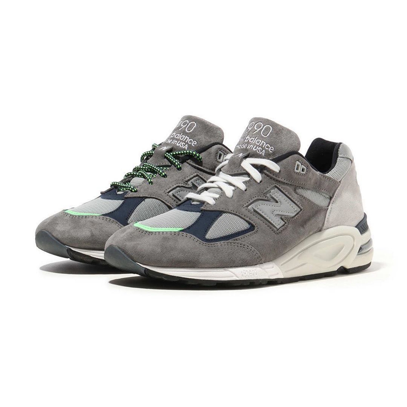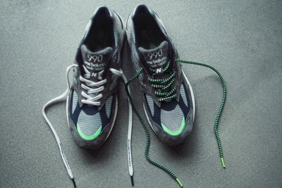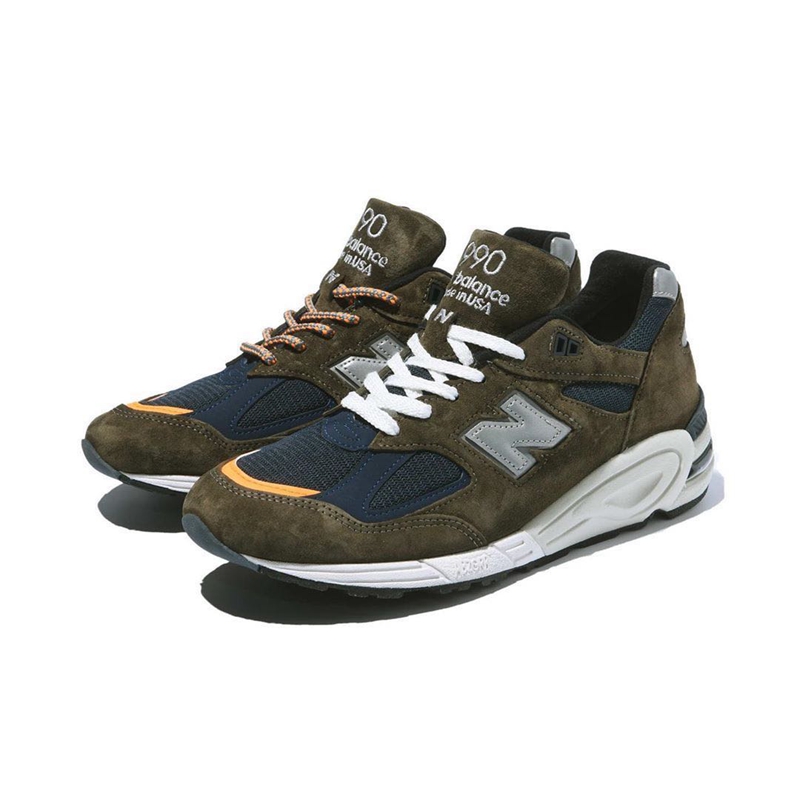 本次合作选用了 M990V2 鞋款,运用了 NB 最经典的灰色,还有 MADNESS 风格显著的军绿加海军蓝配色,用料方面也是十分用心,高级皮革搭配经典 ABZORB 缓震科技,让这次联名显得诚意满满。