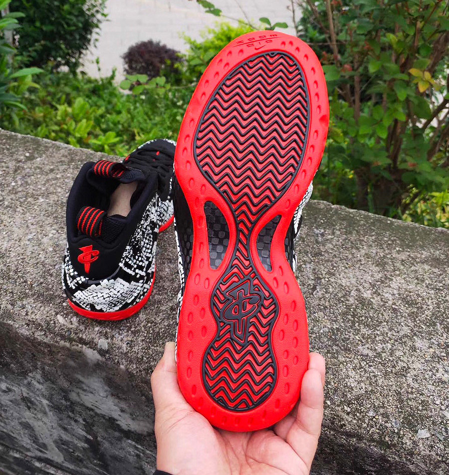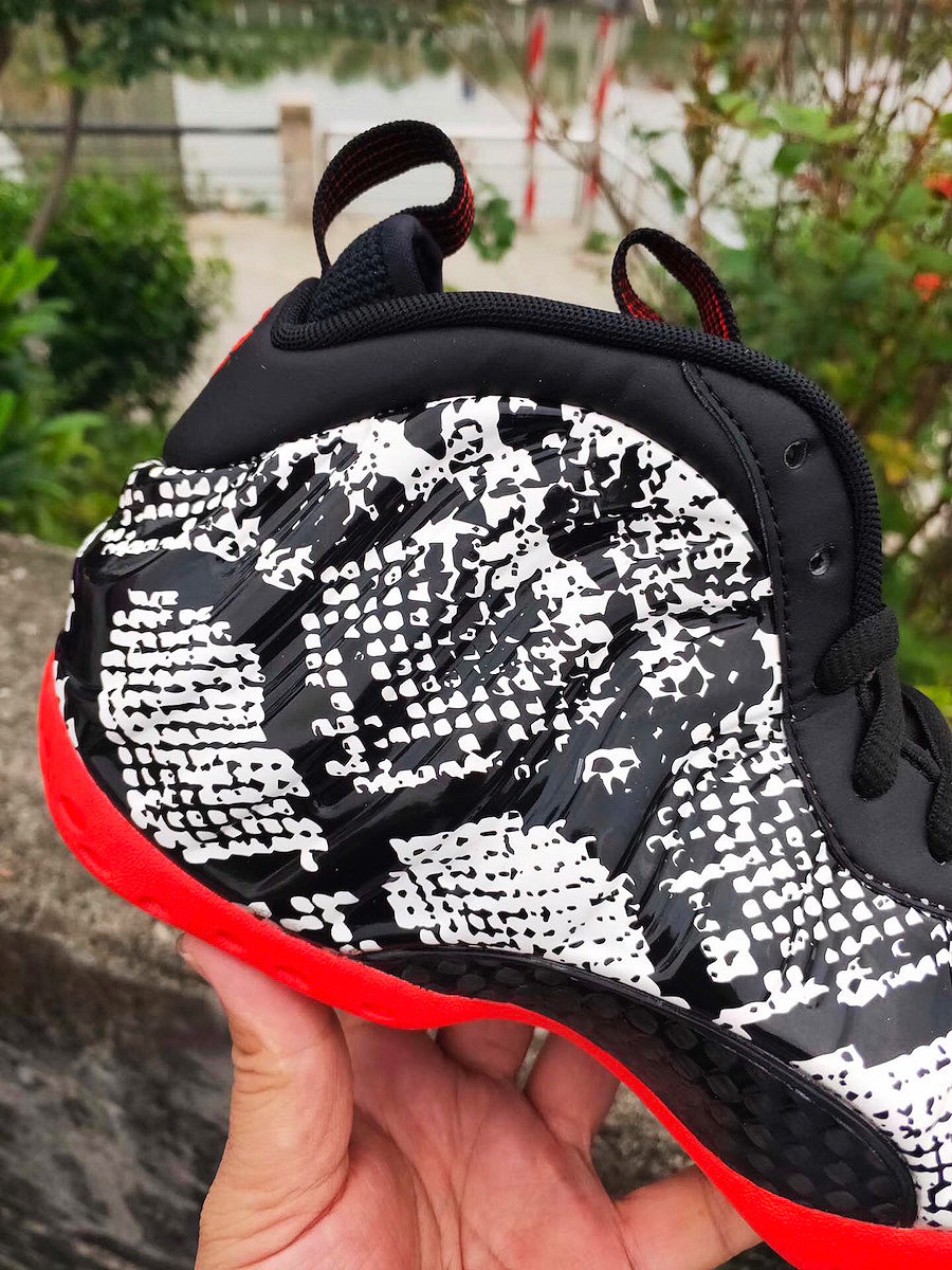 黑色的鞋领和红色的外底是喷泡鞋款的经典搭配,鞋面则以黑白双色呈现蛇皮纹理,整体以简约的黑白红三色呈现,经典又颇具新鲜感。
