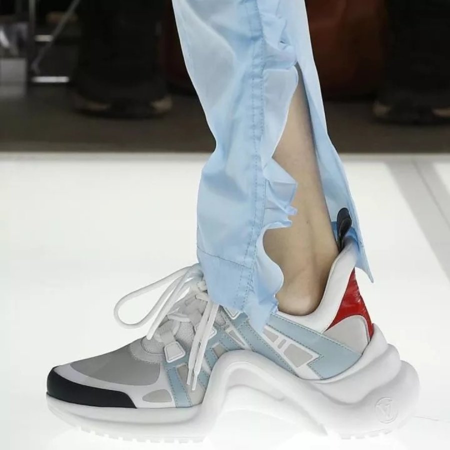 在 2018 年春夏秀场惊艳亮相,LV Archlight 采用小牛皮搭配高科面料营造出令人过目不忘的未来科技感。波浪形的厚底设计,迎合当下的老爹鞋风潮。