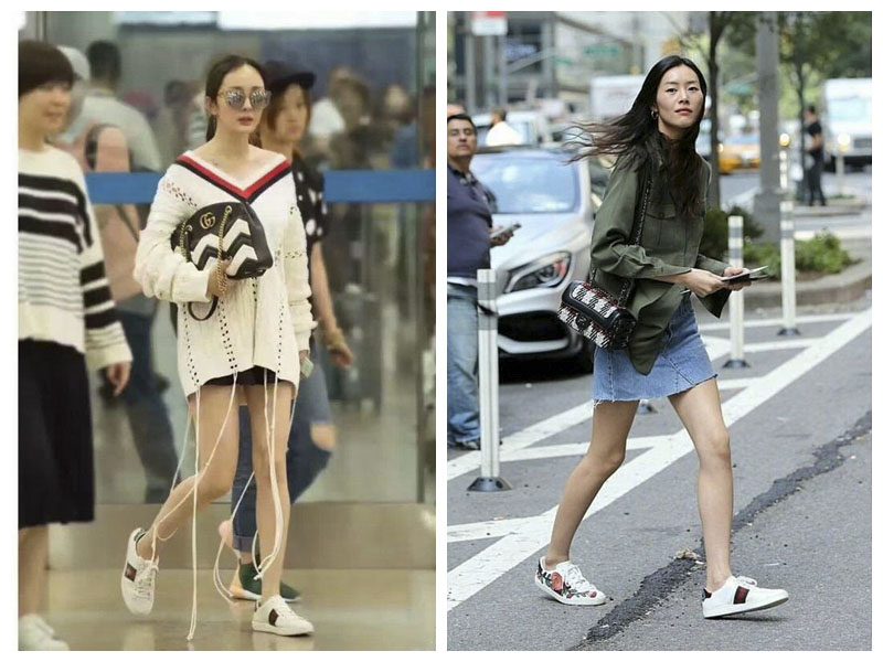 ▼ 杨幂、刘雯上脚 GUCCI ACE 系列