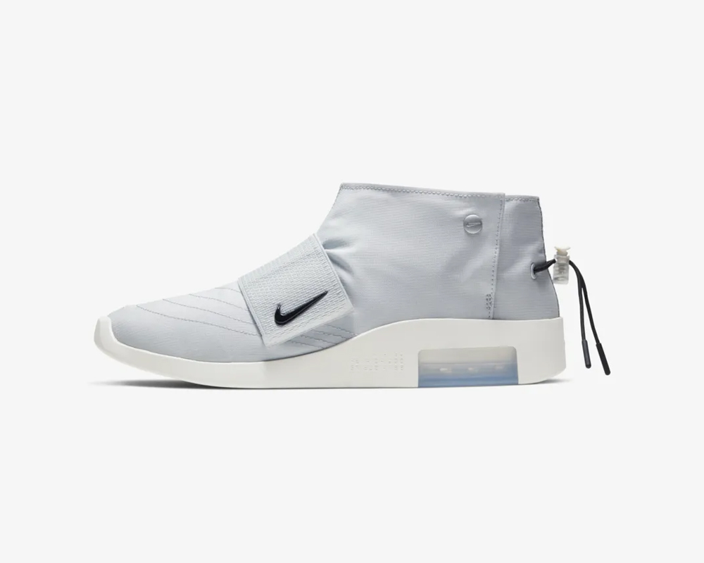 Air Fear of God Raid 以经典篮球鞋 Air Raid 为灵感,在鞋身加入了标志性的双绑带设计,整体以灰白色示人,鞋身搭配黑色 Swoosh Logo,对比强烈。